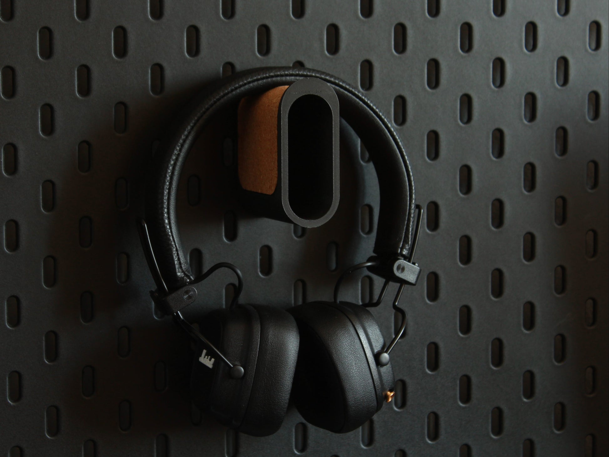 A headphones holder with a modern look that is both minimalist and sturdy.